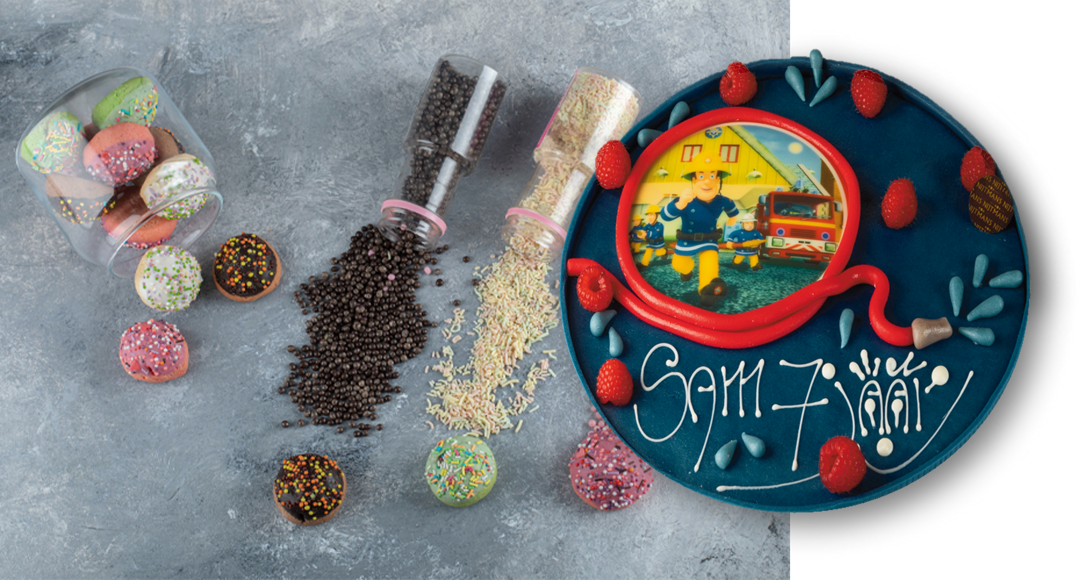 Stel jouw eigen taart samen! Maak de taart persoonlijk door het toevoegen van een tekst en voeg decoraties toe naar wens.