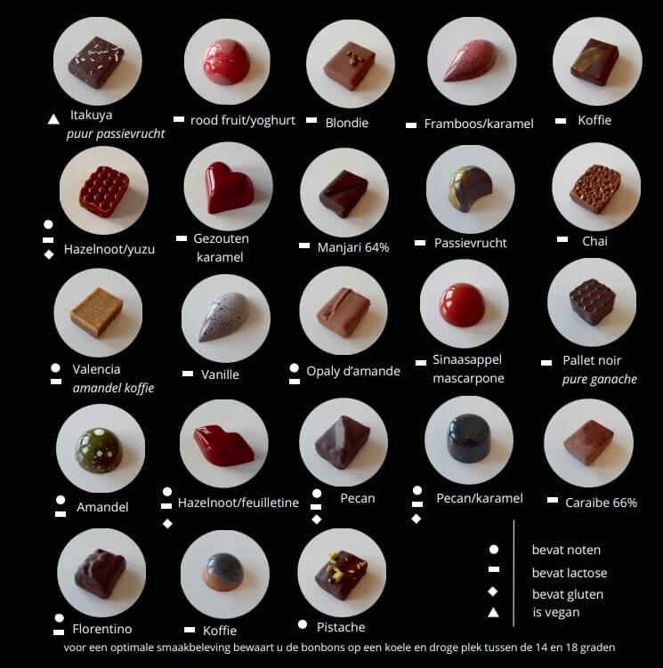 In de productieruimte van patisserie Nijtmans wordt gewerkt met de volgende allergenen: ei, melk (koemelk, roomboter), gluten en noten (amandel, cashewnoot, hazelnoot, walnoot, pecannoot) soja, sesamzaad